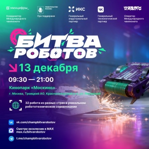 Внимание, друзья! Минцифры России объявляет о проведении финального этапа Международного чемпионата по битве роботов сезона 2025 года! Цель Чемпионата: популяризация инженерной мысли и поддержка современных цифровых технологий в нашей ...