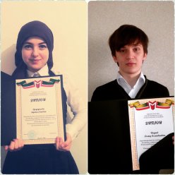 Арсунукаева Зарета ученица 11 класса и Юсупов Ахмед ученик 10 класса. Лауреаты премии для поддержки талантливой молодежи, установленной Указом Главы Чеченской Республики.