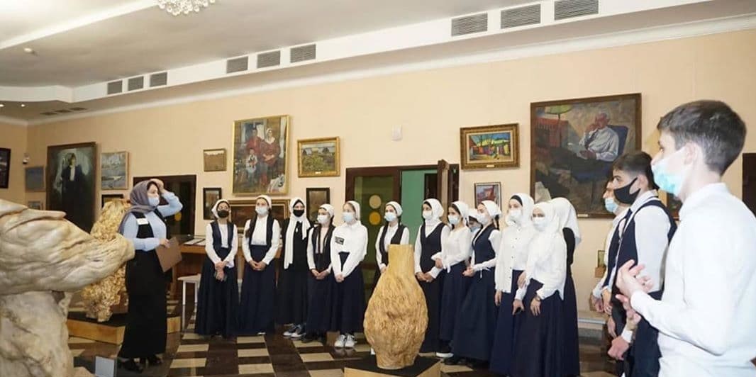 09.11.2020Продолжается работа по реализации проекта предпрофессиональной подготовки ЧГПУ "Педагогический класс".В этот раз учащиеся "СОШ 60 г. Грозного" в сопровождении проректора ЧГПУ по общим вопросам Ахмеда Ажиева посетили Национальный музей Чеченской Республики, где для них было организовано специальное мероприятие.Искусствовед и заведующая отделом изобразительных искусств НМ ЧР Милана Хадчукаева, а также старший научный сотрудник Лайла Дасаева провели для школьников музейное занятие "Творчество Юрия Купера" по выставке "Мир театра", которая в данное время экспонируется в Нацмузее ЧР.Занятие прошло в формате экскурсии с итоговыми вопросами для закрепления материала.Учащимся рассказали о многогранном творчестве всемирно известного художника Юрия Купера и ознакомили с его выставкой, в которой представлены работы, созданные автором для театра и театральных постановок, живописные картины и другие уникальные произведения.Кроме того, для участников мероприятия была проведена экскурсия по выставке скульптурных работ народного художника РФ, известного чеченского скульптора и кинематографиста Илеса Татаева «В соавторстве с природой…».Участники педагогического класса отметили познавательность мероприятия и выразили желание посетить музей снова."Мы очень благодарны сотрудникам музея за то, что они подготовили для ребят столь интересное образовательное мероприятие, позволили им бесплатно ознакомиться с уникальными выставками. Наши учащиеся сегодня стали ближе к миру искусства, узнали много нового о творчестве выдающихся художников", - отметил проректор Ахмед Ажиев.