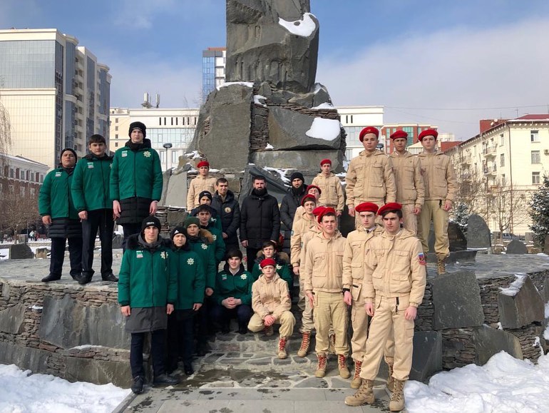 20.02.2021В рамках празднования дня защитника Отечества активисты ВВПОД ЮНАРМИЯ МБОУ «СОШ 60» г.Грозного приняли участие в возложении цветов к мемориалу памяти погибших в борьбе с международным терроризмом.