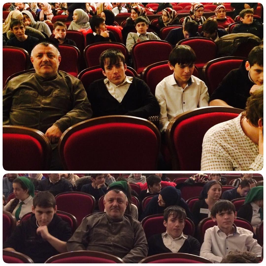 В ТКЗ состоялась встреча с кадием Грозного учащимися школ города, педагог по духовно-нравственному воспитанию нашей школы Азимов С-А. вместе с учащимися 9г класса на встрече с кадием.