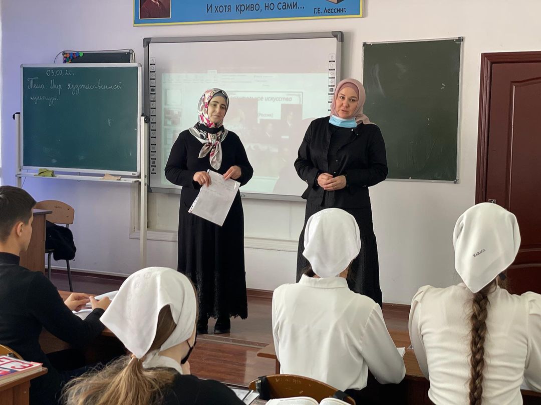 07.02.2022Сегодня в МБОУ "СОШ 60" г. Грозного Идиговой Лалитой Мусаевной (профессор кафедры "Менеджмент") и Яндарбаевой Луизой Абдурашидовной (доцент кафедры "ГМУ"), представителями Чеченского государственного университета им. А.А. Кадырова, проведена профориентационная беседа с выпускниками 11-х классов. Гости сумели очень интересно и в доступной форме рассказать об условиях поступления в университет по направлениям "Менеджмент" и "Государственное и муниципальное управление".Выпускники, в свою очередь, проявили живой интерес к предлагаемому и задали гостям очень актуальные и важные вопросы.Надо отметить, что каждый год некоторая часть выпускников нашей школы становится студентами данного университета, показывая в дальнейшем достаточно высокие результаты обучения.