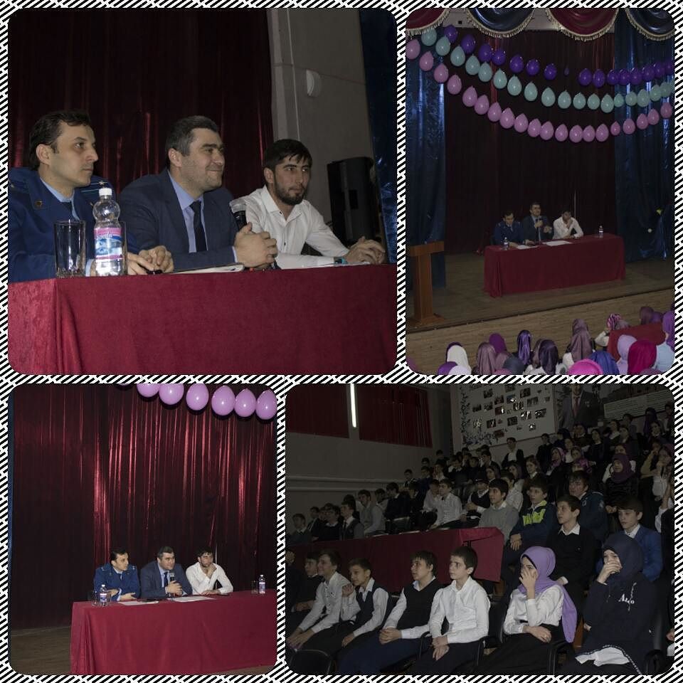 В целях духовно-нравственного воспитания подрастающего поколения 09.02.17г. состоялась встреча с Джамбулатовым Т.Р. заместителем прокурора Ленинского района и главным специалистом-экспертом отдела семейной политики и социальной защиты детства Министерства ЧР по делам молодёжи Цацаевым А.Д. среди учащихся 9-11 классов беседа на тему: "Профилактика правонарушений среди молодёжи".