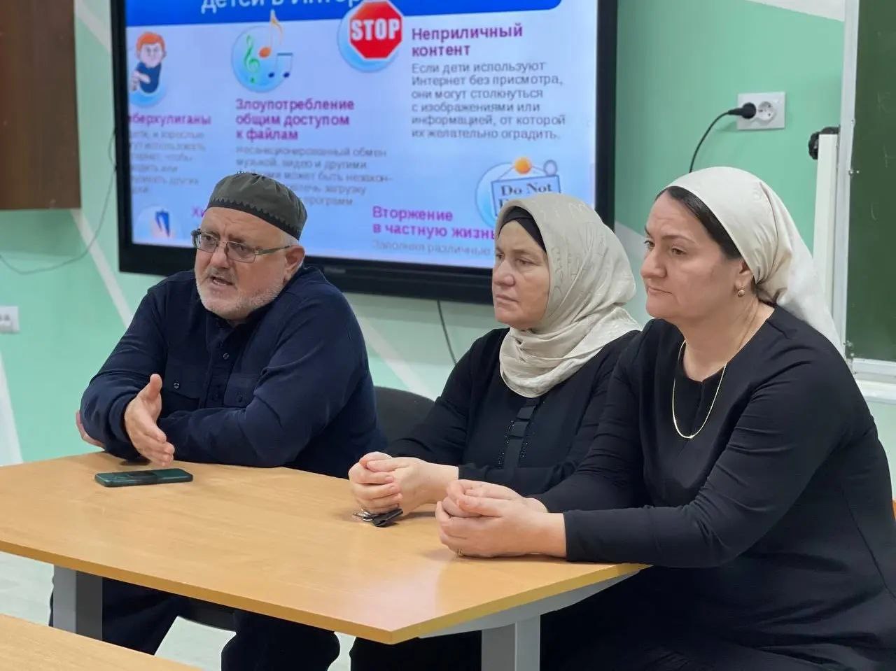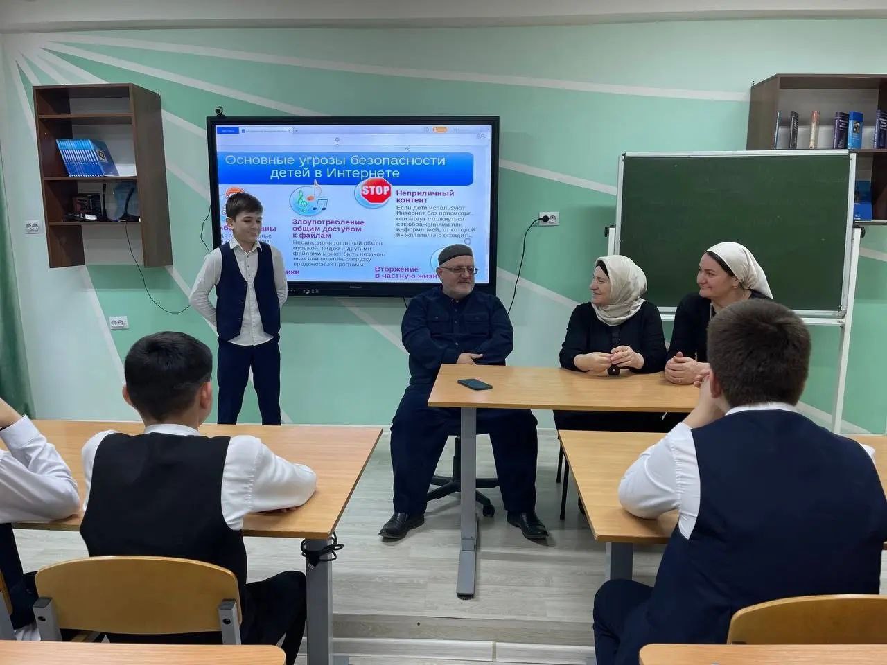 10.11.2022Педагог по духовно-нравственному воспитанию Азимов С-А.С. совместно с социальным педагогом Арсамыковой Х.В. и педагогом-психологом Сулаевой З.М. в целях профилактики деструктивного поведения провели беседу с учащимися 8-х классов на тему "Деструктивное поведение подростков и молодежи в интернете".