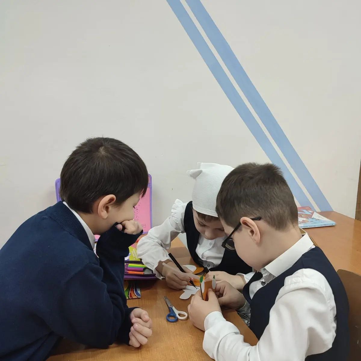 Под руководством классного руководителя Шаиповой А.С. на уроке ребята работали с цветной бумагой, выполняли аппликацию "Зайчик". Первоклассники познакомились с различными видами бумаги и картона, закрепили технику безопасности при работе с различными инструментами, успешно трудились в группах.