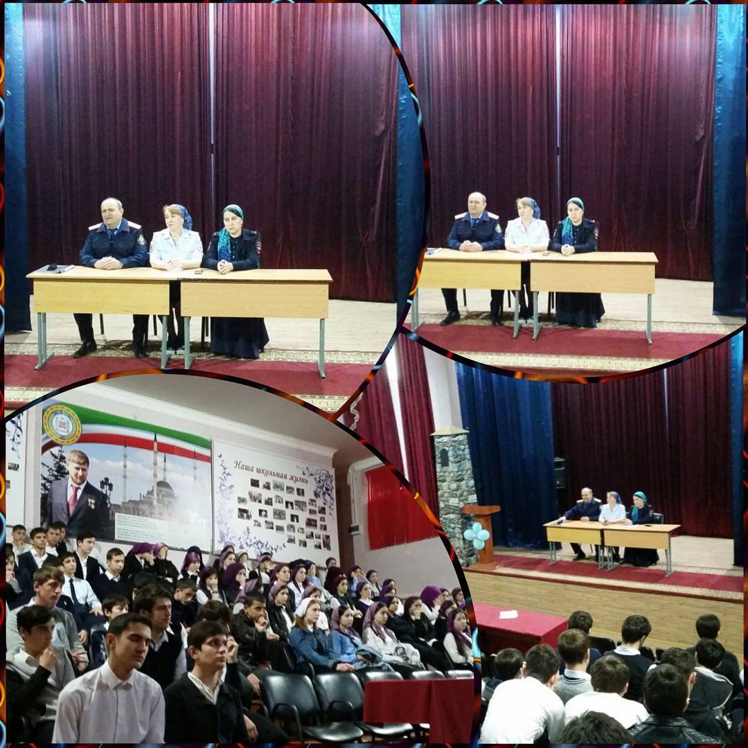 21.04.17г. Была проведена беседа заместителем руководителя СО по Ленинскому району г. Грозный СУ СК РФ по ЧР подполковником юстиции Абдулаев М.Д., ст. инспектором ОДН ОП 1 УМВД России по г. Грозный майором полиции Горчхановой Р А., инспектором ПДН ОП 6 УМВД России г. Грозный капитан полиции Сербиевой А.И., замесиителем директора по ВР и социальным педагогом Арсамыковой Л.В. на тему: "Вовлечение несовершеннолетних в совершение преступлений экстремисткой и террористической направленности, в том числе с использованием информационно-телекоммуникационной сети "Интернет"