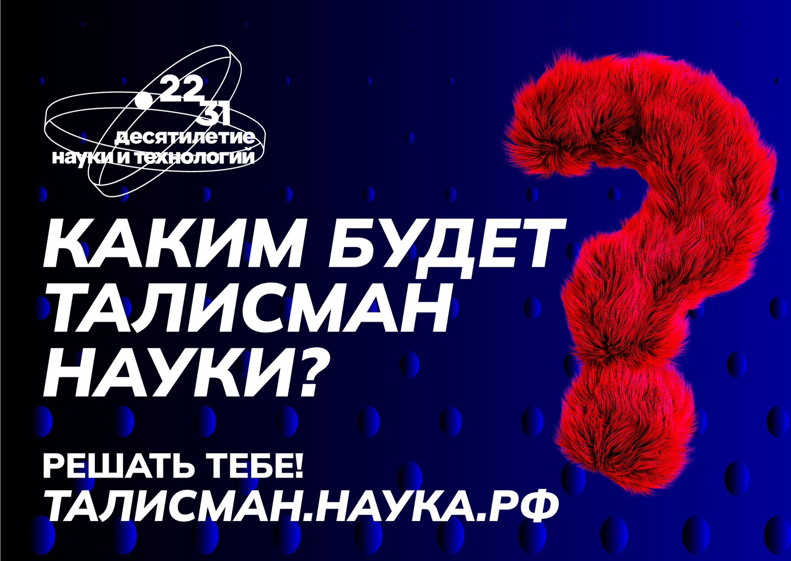 19.07.2023В России стартовал всероссийский конкурс на определение Талисмана Десятилетия. Принять участие в конкурсе может любой житель страны.Для этого необходимо до 31 июля загрузить свой вариант Талисмана на страницу конкурса талисман.наука.рф. Выполнить изображение можно в любой технике и жанре.Отбор работ пройдёт в несколько этапов.С 1 по 31 августа волонтеры и эксперты определят шорт-лист из 40 работ.С 6 по 15 сентября отобранные Талисманы будут доступны для открытого онлайн-голосования на странице конкурса талисман.наука.рф.Пять лучших работ будут представлены членам Координационного комитета Десятилетия науки и технологий для голосования за талисман-победитель.Финалисты конкурса получат дипломы и сувениры, победитель конкурса сможет посетить Конгресс молодых ученых, а его работа станет официальным Талисманом Десятилетия науки и технологий в России.Более подробная информация о конкурсе на странице талисман.наука.рф и на официальном сайте Десятилетии науки и технологий наука.рф.