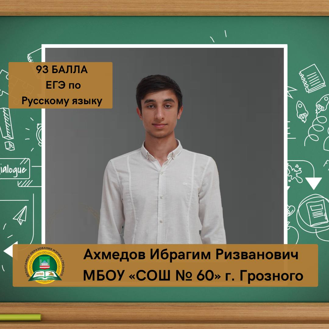Ибрагим Ризванович Ахмедов, ученик МБОУ «СОШ № 60» г. Грозного, набрал 93 балла на ЕГЭ по русскому языку.