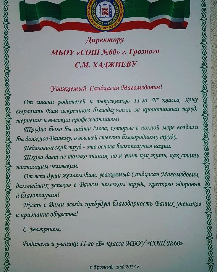 Муниципальное бюджетное общеобразовательное учреждение «Средняя общеобразовательная школа № 60» г.Грозного