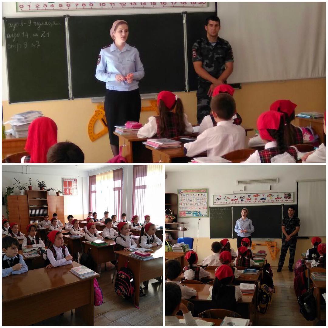12.09.2017Сегодня, 14.09.16, в нашей школе инспектором по делам несовершеннолетних Мотузовой Мадиной и участковым 3-го микрорайона Ибрагимовым Исламом была проведена беседа с учениками начальных классов.