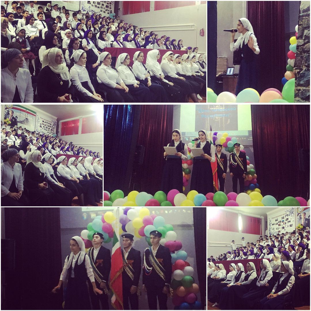 Сегодня, 06.09.17, в нашей школе прошло мероприятие, посвящённое Дню Чеченской Республики. День гражданского согласия и единения - один из главных праздников для Чеченской Республики, поскольку он символизирует, что Чеченская Республика, несмотря на все невзгоды, стала одним из самых стабильных регионов России. Ученики нашей школы отнеслись к празднованию Дня Чеченской Республики со всей ответственностью и подготовили очень интересные и красочные номера, в которых проявили все свои творческие способности.