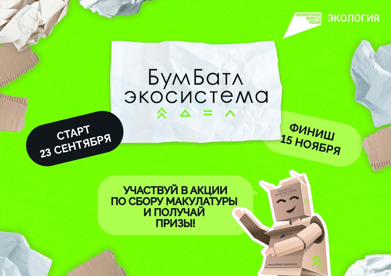 В новом сезоне проекта активисты Движения “Экосистема” проведут для участников акции образовательные активности, мастер-классы, организуют масштабные сборы макулатуры и запустят бумажные флешмобы. Одна из наших основных целей – вовлечь в полезные экомероприятия “БумБатла” юное поколение: школьников и студентов. Активисты движения, региональные отделения которого есть почти во всех субъектах страны, планируют побить прошлогодний рекорд – 95 тыс. тонн собранной макулатуры – и призвать к сборам бумажных отходов всех жителей России», – сказал сопредседатель Движения «Экосистема» Андрей Руднев.«БумБатл» продвигает принципы осознанного потребления – отказ от излишеств, переработку и вторичное использование вещей. Ежегодно в России образуется почти 8 миллионов тонн макулатуры. Более половины этого объема успешно перерабатывается. Важно поддерживать общественные экологические инициативы и объединять подходы к сортировке и переработке отходов, отмечает исполнительный директор Лиги переработчиков макулатуры Алексей Сергеев.«Лига переработчиков макулатуры уже не первый год поддерживает акцию “БумБатл” – это прекрасная инициатива для привлечения внимания к важности переработки бумажных отходов и использования вторичного сырья. Предприятия, входящие в Лигу, в шести федеральных округах ежегодно перерабатывают 70% от общего количества используемой в стране макулатуры. Благодаря таким проектам как “БумБатл”, которые вовлекают в процесс сбора макулатуры множество жителей страны, процент переработанного бумажного сырья с каждым разом растет», – подчеркнул Сергеев.Акция «БумБатл» проходит в поддержку национального проекта «Экология» при участии Минприроды России. Партнеры акции: Госкорпорация «Росатом», Почта России, СБЕР, Банк ВТБ, ПСБ, ДОМ.РФ, ГК «Росводоканал», ООО УК «Металлоинвест», СУЭК, СГК, розничная сеть «Магнит», X5 Group, компания «Лента», ФосАгро, Транспортная группа FESCO, SYNERGETIC, Лига переработчиков макулатуры, РДДМ «Движение Первых», образовательная платформа Учи.ру и компания по вывозу макулатуры «Убиратор».СправочноВсероссийская акция по сбору макулатуры «БумБатл» пятый год подряд проходит в поддержку национального проекта «Экология». С 2023 года соорганизатором проекта выступает Всероссийское общественное экологическое движение «Экосистема». За все время проведения «БумБатла» в нем приняли участие более 5,9 миллионов человек, которые собрали более 161 тыс. тонн макулатуры.