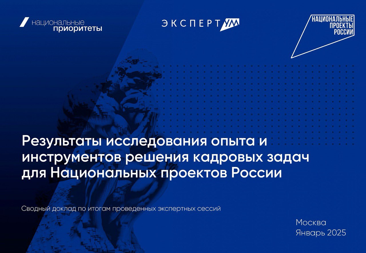 04.02.2025Результаты качественного исследования опыта и инструментов решения кадровых задач экономики России для реализации национальных проектов и достижения национальных целей представила генеральный директор АНО «Национальные приоритеты» София Малявина на подведении итогов серии экспертных мероприятий, которое состоялось 29 января 2025 года в Москве, на площадке Координационного центра Правительства России. Исследование обобщает основные выводы шести аналитических докладов, в подготовке которых приняли участие более 160 экспертов - представителей министерств, ведомств, некоммерческих организаций, образовательных учреждений и бизнеса.Сводный материал был подготовлен АНО «Национальные приоритеты» по итогам проведенных в 2024 году экспертных сессий по тематикам национальных проектов. Результаты этих обсуждений ранее были зафиксированы в отдельных аналитических докладах: «Старшее поколение как кадровый и социальный ресурс»;«Профессионалитет: новый взгляд на карьеру рабочего»; «Кадры для туризма: от сферы услуг к индустрии счастья»; «Ученый и инженер – герои нашего времени»; «Совмещение карьеры и семьи – успех кадровой и демографической политики России»; «Предпринимательство: новая роль и компетенции в экономике России».«Самое важное – это то, что мы с вами создаем тренды. В начале прошлого года, когда мы объявляли общую тему для всех наших экспертных докладов – «кадры», мы еще не знали, что будет такой национальный проект. Мы с вами в своей экспертной деятельности почти на год опережаем и помогаем формировать государственные программы и новые направления», – сказала София Малявина в своем обращении к экспертам.Она отметила, что сквозная тема экспертных докладов затрагивает не только отдельный нацпроект «Кадры», но и все остальные 18 новых национальных проектов. «Практически в каждом нацпроекте есть еще отдельный федеральный проект или направление кадрового сопровождения и мероприятия, которые направлены на рост и развитие кадровой сферы. Это для нас тема – вызов, не только этого года, но и последующих лет, с которой необходимо будет работать», – добавила глава АНО «Национальные приоритеты».Тема кадров неслучайно стала сквозной для всех шести экспертных докладов. Один из главных вызовов, с которым столкнулась наша страна, это необходимость достичь одновременно двух целей: повысить рождаемость и обеспечить экономику высококвалифицированными кадрами. К 2030 году потребность российской экономики в кадрах вырастет до 73,6 млн человек. На фоне сокращения трудоспособного населения и рекордно низкой безработицы в 2024 году в 2,3% придется максимально эффективно использовать все имеющиеся трудовые ресурсы. Меняются и принципы привлечения, подготовки и удержания кадров: вовлеченность работодателя в подготовку кадров, ранняя профориентация, бесшовные переходы между этапами подготовки и работой, постоянное обучение и повышение квалификации, а также внимание работодателя к жизненным ценностям и запросам своих сотрудников – вот что позволяет снижать предприятиям кадровый дефицит.В сводном докладе обозначены приоритеты государства в конкретных сферах, образ будущего и необходимые компетенции, а также требования к подготовке кадров и созданию условий для сохранения и профессионального развития сотрудников.«При