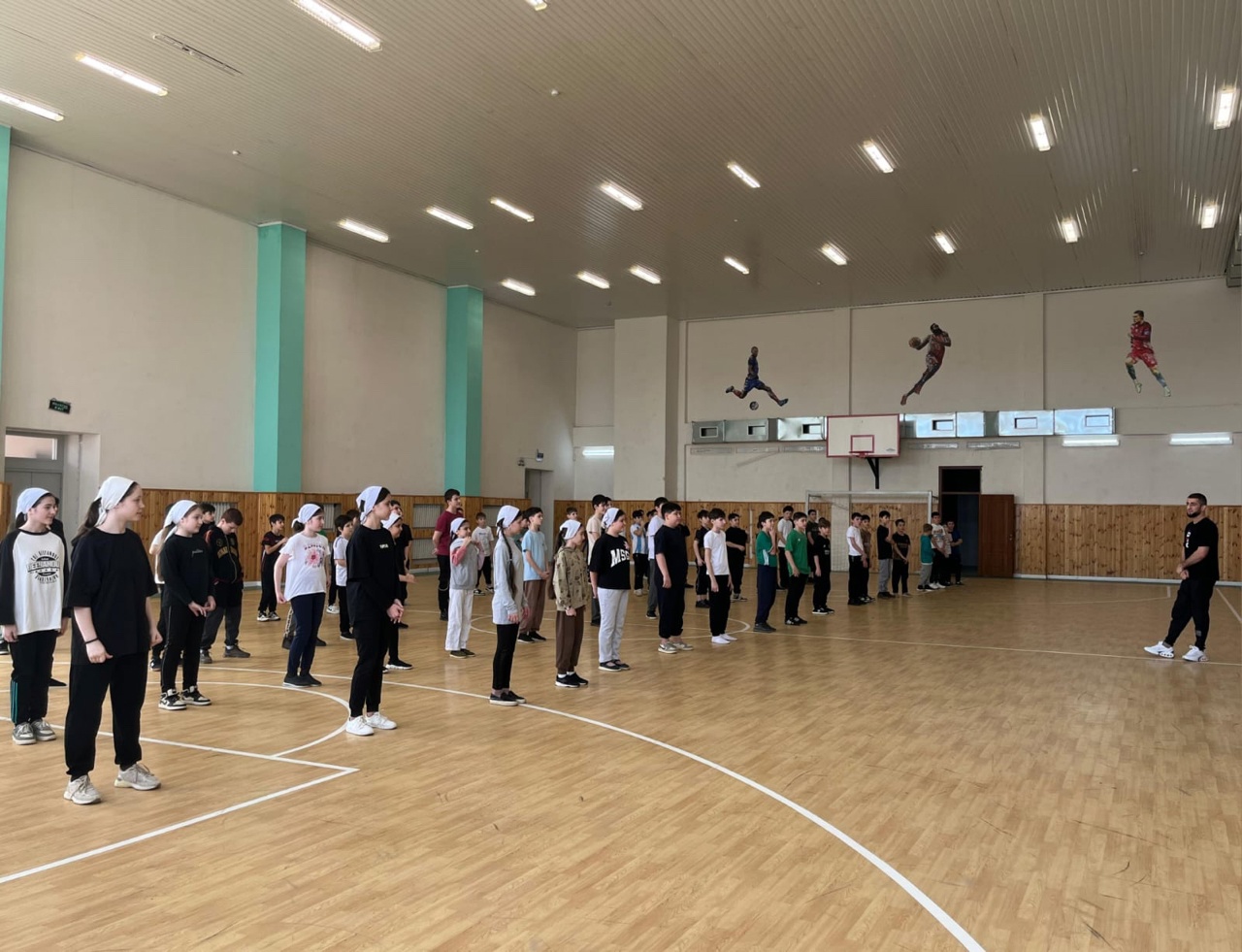 03.04.2025В спортивном зале собрались более 100 обучающихся 5-9-х классов. Зарядку для них провел мастер спорта, бронзовый призер чемпионата России, чемпион Европы 2024 года, бронзовый призер летних Олимпийских игр 2024 года, российский борец вольного стиля Дудаев Ислам Лечиевич