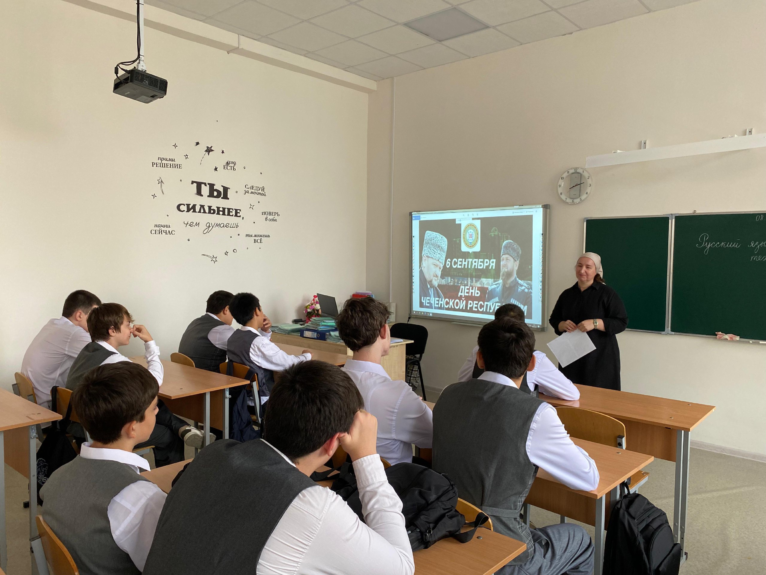 Классные руководители рассказали ребятам о значимости этого дня, отметили достижения нашего народа в восстановлении Республики после военных действий, подчеркнули важность роли Ахмат-Хаджи Кадырова в установлении мира на нашей родной земле.Беседу в 10 классе провел почетный гость нашей школы Депутат Парламента Чеченской Республики Талхигов Юсуп Сулейманович. Он отметил, что под руководством нынешнего Главы республики, Героя России Рамзана Ахматовича Кадырова, Чеченская Республика продолжает развиваться как мирный и процветающий регион. Созданы все необходимые условия для свободы граждан и их самореализации, независимо от национальной принадлежности и вероисповедания. Республика занимает ведущие позиции среди субъектов Российской Федерации по многим показателям.