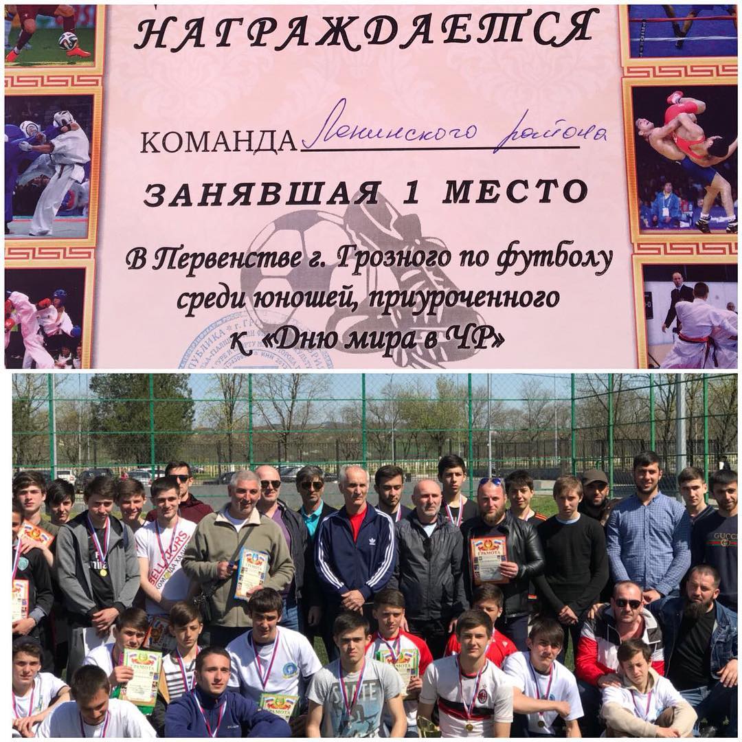 16.04.2018Команда Ленинского района заняла 1 место в Первенстве г. Грозного по футболу среди юношей, приуроченного ко Дню Мира ЧР.