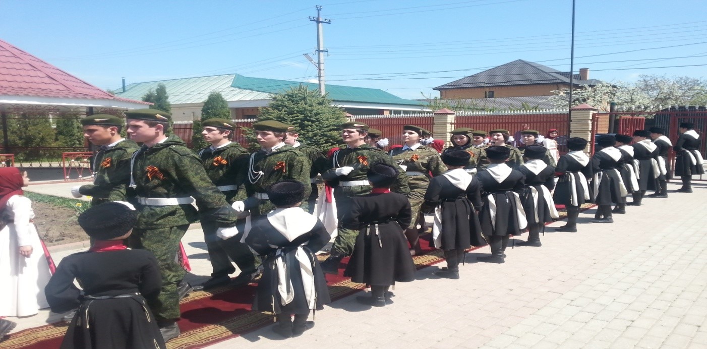 В Чеченской Республике стартовала акция-эстафета «Знамя Победы». Первая церемония передачи символа состоялась в Центароевской школе, где под музыку военных лет лучший патриотический отряд Республики МБОУ «СОШ№60» вручил его сыновьям Главы Чеченской Республики Героя России Р.А. Кадыро