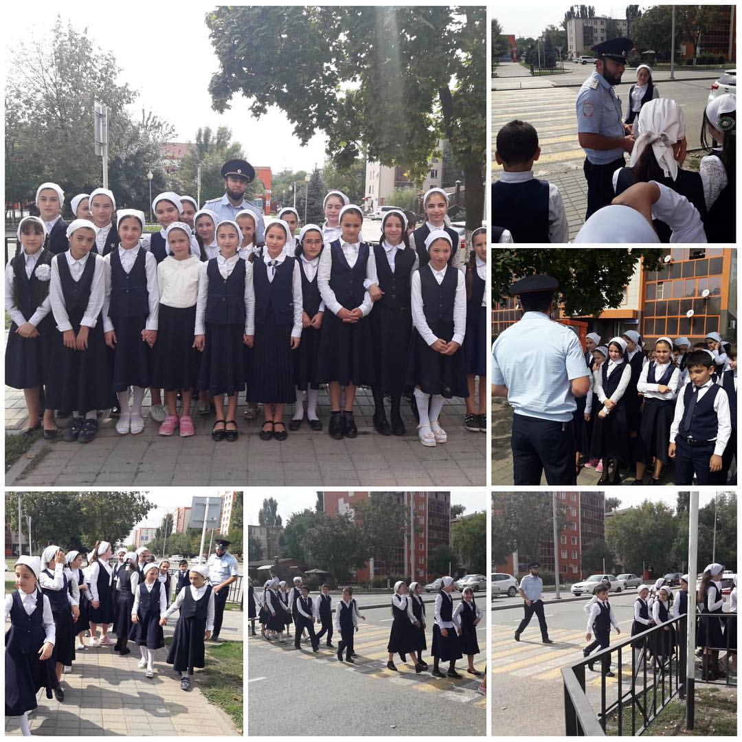 15.09.2018Сегодня 15.09.2018г. в рамках мероприятия "Внимание-дети" совместно с госинспектором по пропаганде БДД ОГИБДД УМВД России по г. Грозному Кантаевым З. А. была проведена пешая экскурсия для младших школьников по безопасному маршруту "Дом-школа-дом". В ходе экскурсии инспектор напомнил юным участникам дорожного движения, как правильно перейти проезжую часть дороги по регулируемому и не регулируемому пешеходному переходу,а также рассказал о необходимости ношения световозвращателей на одежде в темное время суток