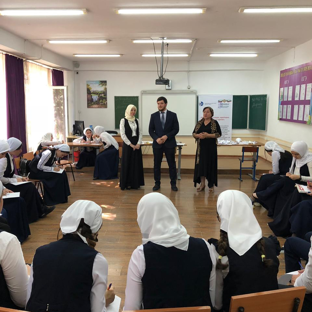 21.10.2018В МБОУ "СОШ 60" состоялся образовательный семинар на тему: "Межкультурный диалог" в рамках проекта " Культура, традиции,обычаи моего народа". Цель семинара- повышение уровня знаний и компетенций старшеклассников Чеченской Республики в сфере миротворчества, народной дипломатии, межкультурного и межконфессионального взаимодействия. На семинаре присутствовали: представитель Департамента по связям с религиозными и общественными организациями Администрации Главы и Правительства ЧР, координатор проекта Аюбова Луиза- член Совета при Главе ЧР по развитию гражданского общества и правам человека, тренер Марина Мацаева и обучающиеся 10 "А" класса.