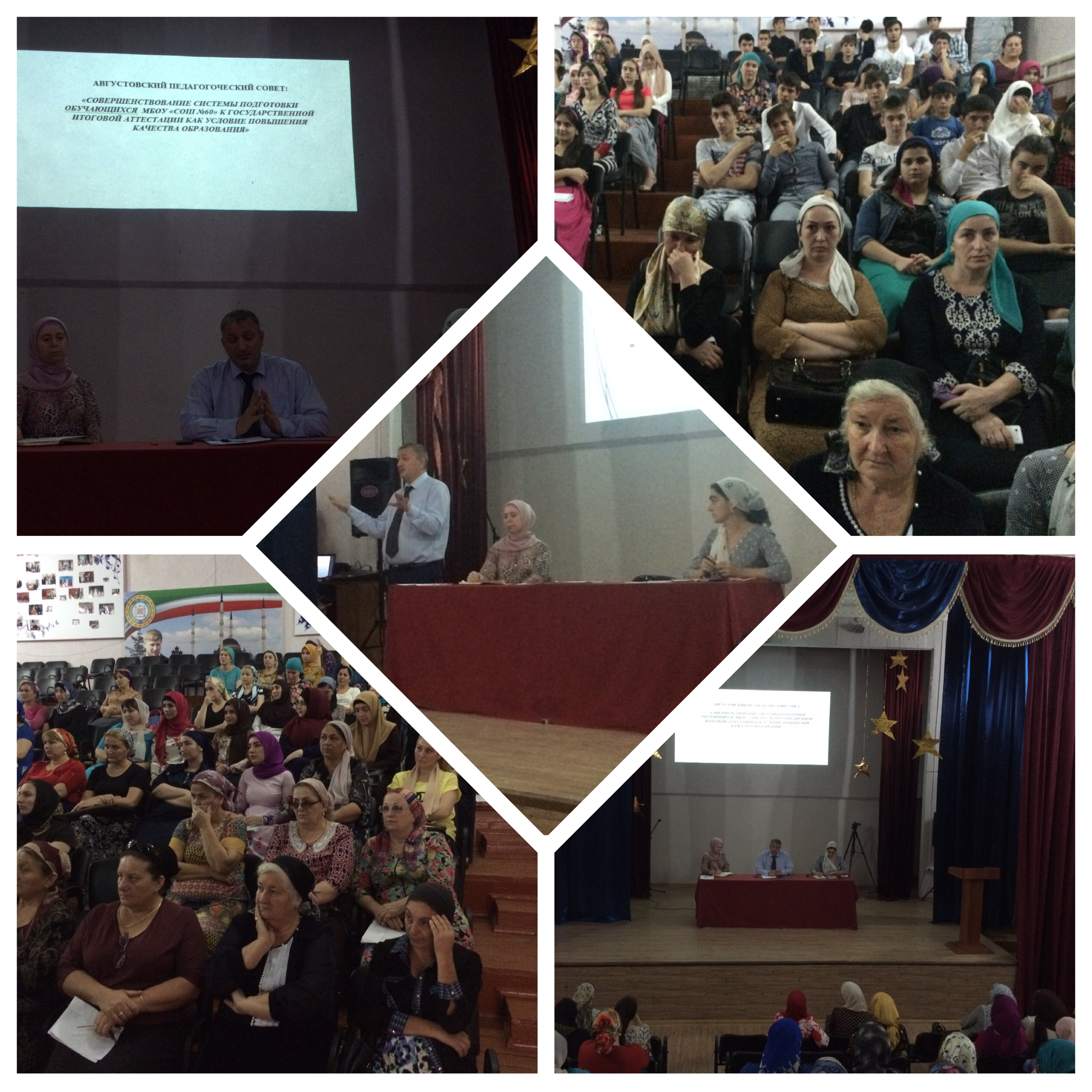 29.08.2015г состоялся августовский педагогический совет педагогических работников МБОУ «СОШ №60» на тему:«Совершенствования системы подготовки обучающихся МБОУ «СОШ №60» к государственной итоговой аттестации, как условие повышения качества образования». В своем докладе директор школы Хаджиев С.М. отметил, что учителя должны обеспечить такой уровень качества преподавания предметов, а классные руководители и администрация школы сотрудничество с родителями, которые обеспечат существенный рывок в повышении качества образования школьников и обеспечит 100% сдачу ЕГЭ в 2015-2016 учебном году.Был утвержден план работы школы на 2015-2016 учебный год, приняты основные образовательные программы НОО, ООО, а также ряд нормативных локальных актов школы.
